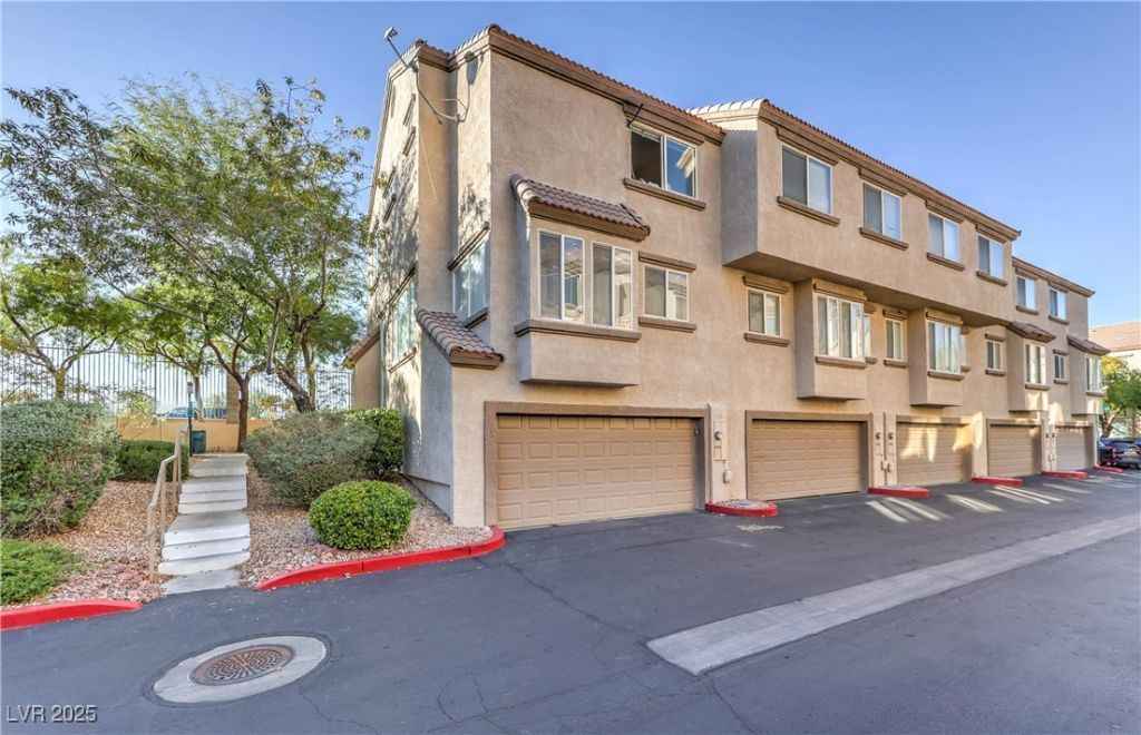 Tri-level townhome with great views of park and mountains! End unit with attached 2 car garage, living room with entertainment niche. Kitchen with nook and 2 primary bedrooms. Near Summerlin parkway, parks, shopping, restaurants and public transportation.