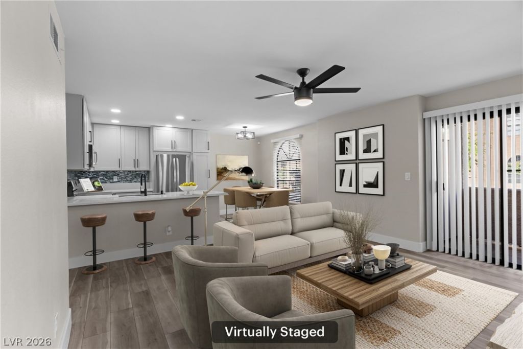 Welcome to this stunning, fully renovated ground floor condo featuring an open-concept floor plan. It has been meticulously updated in the past few years offering a modern aesthetic finishes throughout. The gorgeous kitchen has Dove Grey Shaker cabinets contrasted by matte black handles. The space is finished with sleek quartz countertops, stainless steel appliances, and recessed LED lighting. Complementing the modern design is warm luxury vinyl plank flooring throughout?engineered for durability. Both bathrooms have been completely remodeled, featuring honed Carrara tile, custom accented shampoo boxes, and all-new valves and trim kits. Detail has been attended to, including fresh interior paint, upgraded 5 baseboards, new light fixtures, ceiling fans, chandeliers, and new hardware on all doors and switches. Beyond the interior upgrades, this property offers a central location with close proximity to local schools and premier shopping centers. Truly move-in ready!