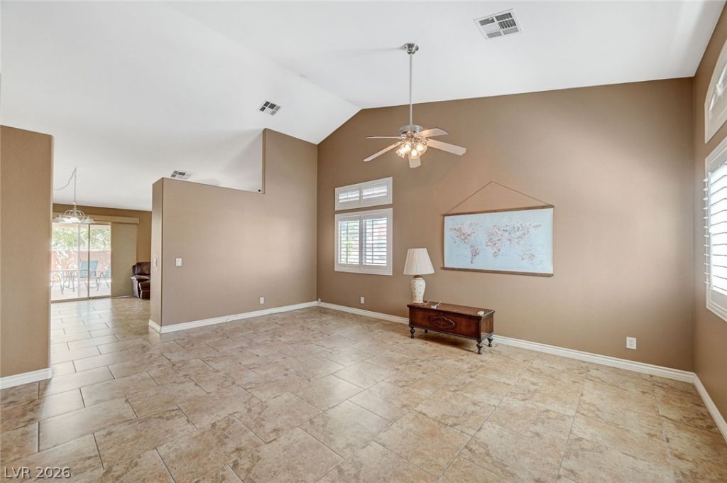 Beautiful single-story home on a premium corner lot in a cul-de-sac with no neighbors behind and impressive RV parking (44x11)! This open floor plan is filled with natural light and offers 4 bedrooms, a spacious kitchen with stainless steel appliances, granite countertops, tile flooring, and shutters throughout. The oversized backyard is designed for entertaining with low-maintenance landscaping, a covered patio, freshly painted cool deck, sparkling pool and spa, safety fence, and a brand-new pool heater. Large side yard is ready for your personal touch. Additional features include a 3-car garage, water softener, alarm system, and low HOA dues which includes alarm monitoring with ADT. Ideally located just 5 minutes to the 215 Beltway, 15 minutes to the Las Vegas Strip, and 10 minutes to The District. Don't miss the opportunity to own this amazing home!