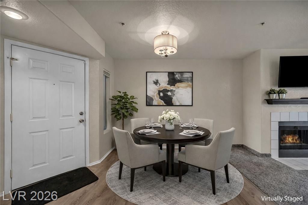 Welcome home to your charming first-floor condo featuring a cozy fireplace and a large covered patio with peaceful park views?perfect for indoor-outdoor living. Freshly updated with new flooring and new paint, this home is move-in ready and offers a functional, comfortable layout. Enjoy the convenience of a covered parking space and a prime location near the airport, just minutes from the Las Vegas Strip, with easy access to shopping, dining, and major roadways. Ideal for owner-occupants, second-home buyers, or investors seeking low-maintenance living in a high-demand area.